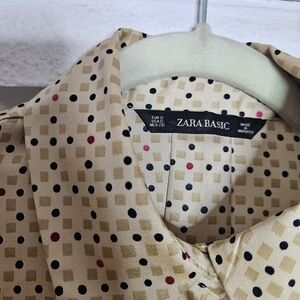 Zara Basics Women's Polka Dot Geometric Button-down Blouse Top Shirt Cream/Tan Multi-color size Small