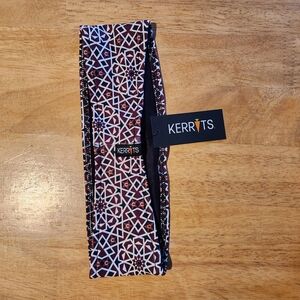 Stylish headband with a geometric pattern. Features a mix of red, white, and blue colors.