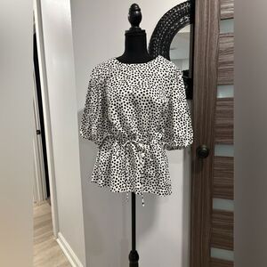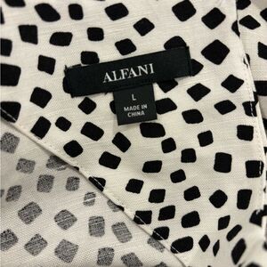 NWT Alfani Women's Coral Tides Shirt Linen Blend White Black Large