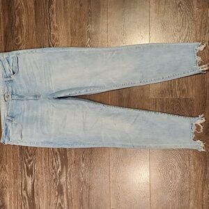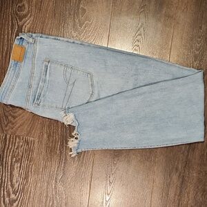 women's ladies trendy stylish minimalist normcore high-waisted raw frayed light wash step hem denim pants jeans plus size AE AEO