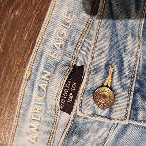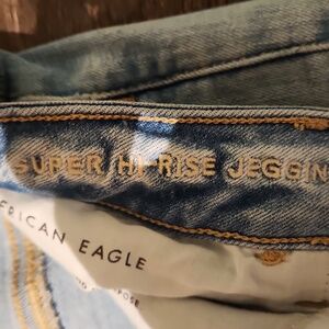 ❤️ AMERICAN EAGLE SUPER HIGH RISE SKINNY JEANS / JEGGINGS, 18 (34) Zipper fly with button closure. Stretchy. Measurements are approximate and taken laying flat: 28" inseam, 19" across waist laid flat, 12.5" rise. Excellent condition!