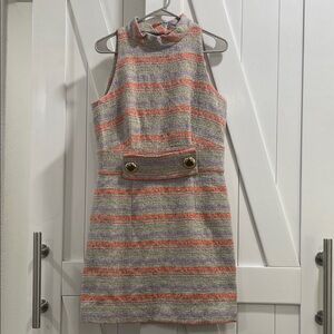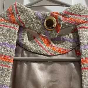 Beautiful gold button accents. Tweed. Has a vintage feel. So fun. Size 10