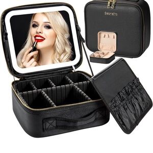 Seoneiro Makeup Travel Bag Makeup Case Make up Train Case LED Lighted Mirror
