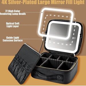【Adjustable Light Makeup Mirror】Our 4K full screen makeup train box has three kinds of lights that can be freely switched, cold light, natural light, warm light, long press the switch to adjust the light brightness from 0% to 100% to meet your different makeup needs.