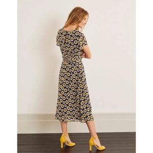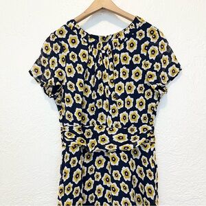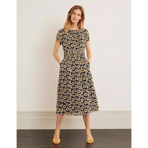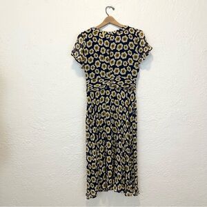 Chic midi dress with vibrant floral pattern. Short sleeves. Perfect for any occasion.