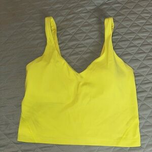 Bright and supportive cropped tank with built in sports bra. Ideal for active lifestyles. Sleek design with a comfortable fit. Gently used. Bra padding inserts included. Limited edition color ✨