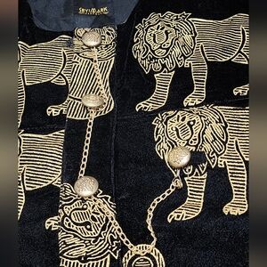 Seyimark Elegant Black and Gold Lion Print Men's Top