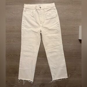 Frank & Eileen Monaghan Ivory High Rise Straight Crop Raw Hem Jeans 30