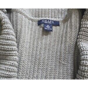 Keywords: Chaps, cardigan, sweater, womens, toggle front, gray, cotton, knit, shawl collar, pockets, casual, classic, cozy