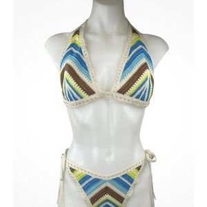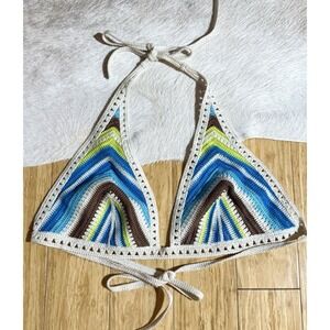 Aerie Multicolor Striped Crochet Halter Swimwear Swim Bikini Top Sz XL