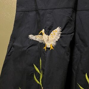 Eshakti Navy Blue Embroidered Bird Embellished Stretch Poplin Dress