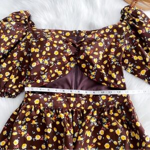 NWOT Autumn Adeigbo Bridgette Puff Sleeve Cut-Out Top Brown Yellow Floral