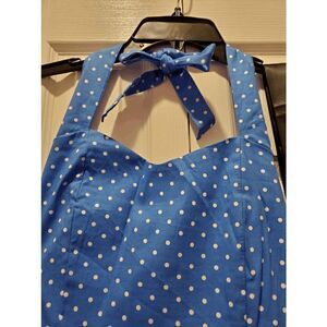 π NWT Pinup Retro 1950s Blue Polka Dot Tulle Hem Halter TeaβDress with Belt M