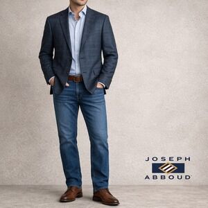 Joseph Abboud Reda 1865 Wool Plaid Suit Jacket Blazer Sport Coat Men 46L Blue