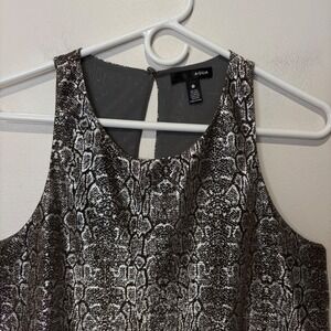 Aqua Womens Tank Going Out Top Shimmer Silver Animal Print Small Club Festival