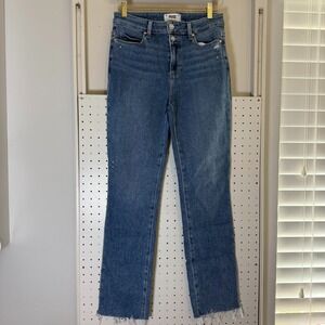 PAIGE Cindy Jeans Women's 27 Button Neelah Distressed Denim High Rise Raw Hem.