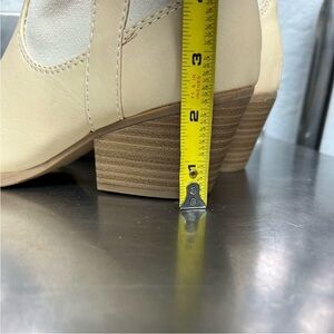 Step out in style with these chic cream ankle boots. Perfect for any occasion, these booties offer both comfort and elegance.