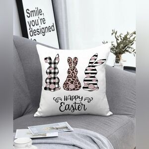 Easter Spring Pillow Cover Decorative Bunny Print Zipper Closure Seasonal Easter Rabbit Print Pillowcase Square 17.7 X 17.7 in