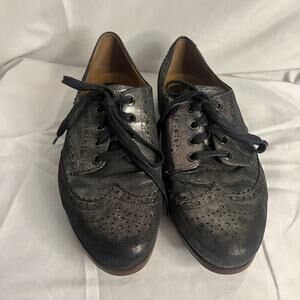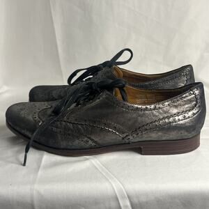 Earthies Santana Pewter Shoes Womens 8.5B Gray Leather Lace Up Wingtip Oxford