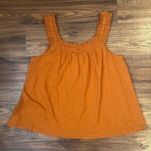 Anthropologie Burnt Orange Lillian Ruched Tank Medium Flowy Summer Boho Casual