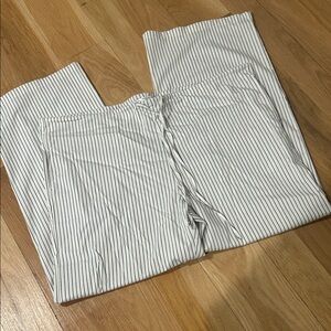 Comfortable cream pants with black stripes. Ideal for lounging or casual outings. Adjustable waistband with drawstrings. Never worn!