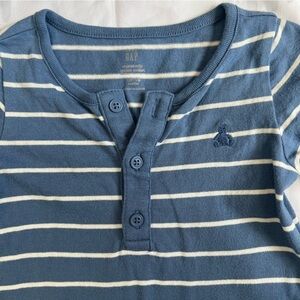 Baby Gap Blue and White Striped Kids Long Sleeve One Piece Size 12-18 Months