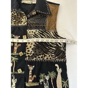 Vintage Black Denim Button-Up Vest- Shirt/Top Women Large Cats Front Back
