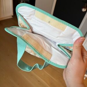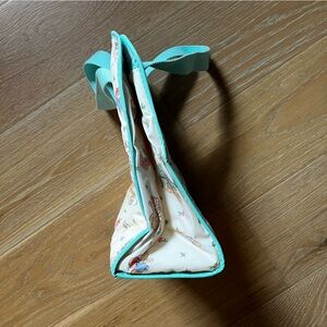 Charming Peter Rabbit tote bag. Features a delightful print with teal accents. Perfect for carrying essentials.