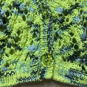 Urban Outfitters size S lime green yellow loose knit V-Neck cap sleeve button up crop top