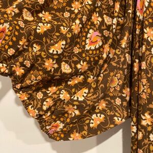 Madame Peacock Sweetheart Dress exudes romantic and earthy goddess. This exquisite signature Madame Peacock print in stunning Coffee colorway features paisleys, variegated florals and geometric shapes for a reimagined take on heritage Indian textiles. True to size, the Sweetheart Dress includes a soft and comfortable shirred back, elasticated shoulders and elasticated cuffs. With attached thick waist ties included for different styling opportunities, we love the versatility of this Dress! A style that can easily be elevated with a great heel for a special event or relaxed with a blazer and sneaker for more of a street look, this piece is quickly becoming a team favourite.