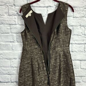 Loft Sheath Dress Size 6 Petites Brown Gold Metallic V Neck Exposed Zipper