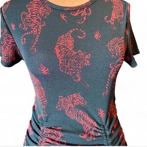 Sexy goth alternative dark bohemian indie sleeze emo red and black tiger eclectic maximalist stretch bodycon ruched drawstring stretchy clubwear mini dress by H&M divided