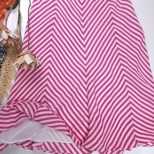 Michael Kors Pink White Stripe Chevron Poly Skirt Sz 8