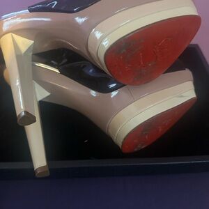 Christian Louboutin Black and Tan Peep Toe Slingback Heels