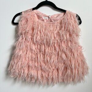 Avec Les Filles Women's Pink Feather Vest Sleeveless Back Zip Jewel Neck M