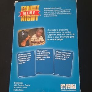Enjoy endless laughter with the Family Meme Night game. Perfect for ages 8 and up, this game features a vibrant blue design. Gather your family and friends for a night of fun and creativity.