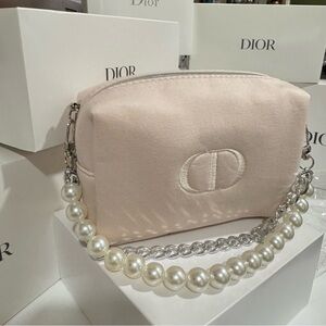 Dior Baby Pink Cosmetic pouch with crossbody chain.