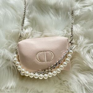 Brand new 100% Authentic Dior Makeup line converted crossbody bag with chains. Super cute and soft with embroidered CD logo.