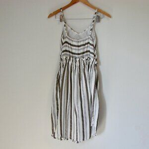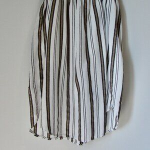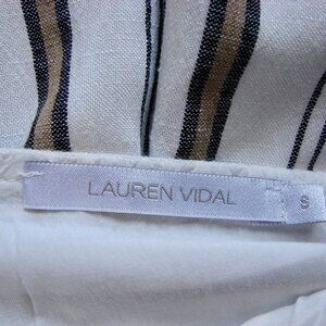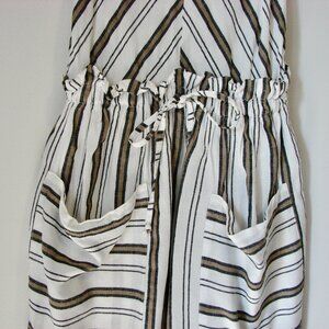 Linen Blend Dress Spaghetti Strap Lauren Vidal White Black Tan Stripe Small