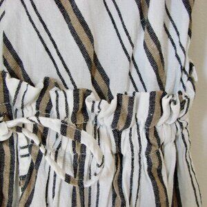 Linen Blend Dress Spaghetti Strap Dress Lauren Vidal Paris Black White Tan Stripes Size Small ~ 64% Viscose, 18% Linen, 15% Cotton, 3% Polyester