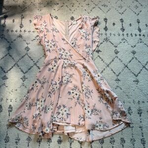 Altar’d State Blush Pink Floral Mini Dress Ruffle Sleeve Brunch Size M