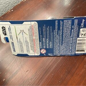 New with tags. The box/packaging shows some wear and tear from storage. This toy does not light up. Iconic Star Wars lightsaber with blue blade. Silver and black handle design. Ideal for enthusiasts.