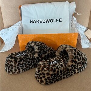 Naked Wolfe Furry Leopard Slides with Gold Detail