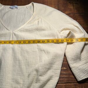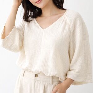Evereve Anthropologie Cream V-Neck Women's Balloon Top Bell Sleeves Sz M