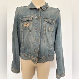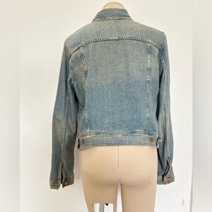 This timeless GAP jean jacket in a rich blue hue offers a versatile and stylish addition to any wardrobe. Crafted with durable denim, it provides both comfort and a classic look. Perfect for layering, this jacket is a must-have for any casual outing.