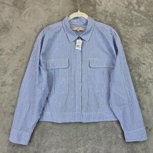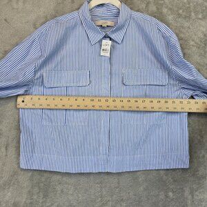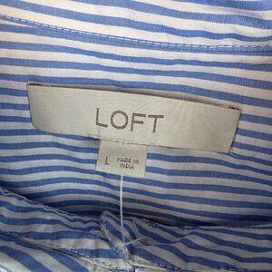 LOFT Shirt Womens Large Blue White Stripe Cropped Button Up Collared Utility Top