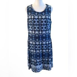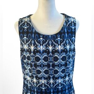 Beautiful AB Studio dress featuring a striking blue and white baroque-inspired print. Designed in a sleeveless shift silhouette with a scoop neckline and a flowy, relaxed fit. Lightweight and versatile — perfect for summer wear, office layering, or pairing with sandals for a casual day out.