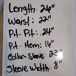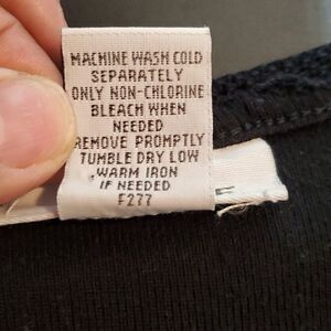 Color: Black with a White and Tan Stripe on bottom hem. Boxy Cute. Cute thick Fishnet type sleeves. Nice heavy material.