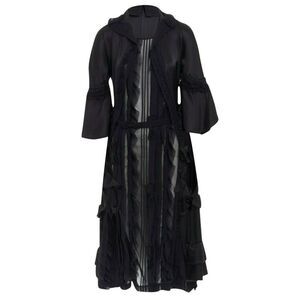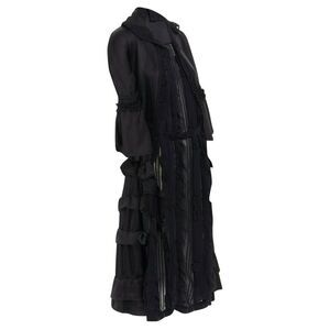 Delivery Duty Paid included – runway COMME DES GARCONS 2005 Broken Bride black victorian ruffle silk dress SReference: TGAS/A00808Brand: Comme Des GarconsDesigner: Rei KawakuboCollection: Fall Winter 2005 Broken Bride - RunwayMaterial: SilkColor: BlackPattern: SolidClosure: ZipExtra Details: From Fall Winter 2005 Broken Bride collection. Silk, polyester. Black. Victorian inspired dress. An illusion of a jacket over dress. Spread collar. 3/4 wide flared Victorian sleeves. Grommet and lace trimming on sleeve. Ruffle wide collar. Ribbon applique down centre. Tiered ruffled silk. Ruffle details on skirt. Fitted at waist. Flared skirt. Zip back closure Made in: JapanCONDITION:Condition: Excellent, this item was pre-owned and is in excellent condition. SIZINGDesigner size: SSize reference: US2-4 / UK8 / IT40 / FR36 / XS-SMEASUREMENTS: Shoulder to shoulder: 39cm / 15.2"Chest: 35cm / 13.7"Waist: 34cm / 13.3"Hip: 38cm / 14.8"Length: 113cm / 44.1"Sleeve length: 46cm / 17.9"Measurments: length: 1130 mm