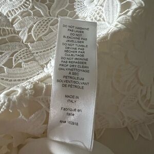 Mini length. Fit & flare silhouette. Shoulder straps. Unique curved front neckline. Square neckline at the back. Concealed back zip closure (at center seam). Lined (slightly stretchy) with a guipure lace overlay (non-stretchy). Fully lined, no sheerness. Midweight fabric. Made in Italy. Dry clean only.